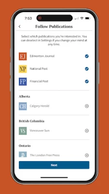 Skreddersy din egen nyhetsopplevelse fra første gang du åpner appen ved å velge dine foretrukne publikasjoner, noe som sikrer en relevant nyhetsstrøm tilpasset dine interesser. Bruk «Utforsk»-fanen for å dykke ned i de mest omtalte og trendende historiene fra våre redaksjoner over hele Canada. Ytterligere personalisering er enkelt; følg spesifikke emner, journalister og skribenter for å fylle feeden din med innsikt og perspektiver du verdsetter mest. Appen er designet for å gi deg nyhetene du ønsker, akkurat slik du ønsker dem.
