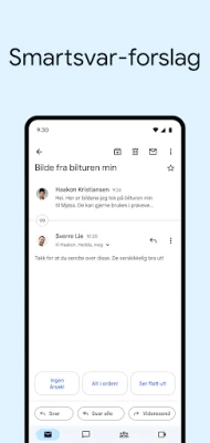 Opplev det beste av Gmail med den offisielle appen på Android. Dra nytte av pålitelig sikkerhet, sanntidsvarsler, enkel administrasjon av flere kontoer og kraftig søk i innboksen din. Med Gmail for Wear OS kan du også sjekke e-post og holde deg produktiv direkte fra håndleddet.