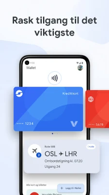 Med Google Wallet får du rask og trygg tilgang til alt du trenger i hverdagen. Bruk telefonen til å gå om bord på fly eller betale med berøring der Google Pay godtas. Appen lar deg samle dine viktigste ting trygt på ett sted, alltid lett tilgjengelig.