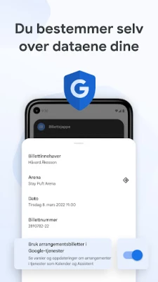 Trygghet er kjernen i Google Wallet. Hver funksjon er bygget med robust sikkerhet og personvern i tankene, og beskytter alt du velger å lagre. Du kan stole på avanserte Android-sikkerhetsfunksjoner som totrinnsbekreftelse, «Finn telefonen min», og muligheten til å fjernslette data, som alle bidrar til å beskytte din informasjon. Når du betaler berøringsfritt med telefonen, ivaretar Google Pay dine finansielle opplysninger ved å ikke dele ditt faktiske kredittkortnummer med forretningen. Videre har du full kontroll over dine egne data; enkle personverninnstillinger lar deg selv bestemme hvilken informasjon du ønsker å dele for å oppnå en mer personlig opplevelse.