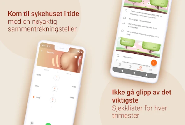 For å sikre et sunt svangerskap for både deg og den lille, tilbyr appen en rik kilde til ernæringsråd, inkludert matvarer du trygt kan nyte og de du bør unngå, samt veiledning om godkjente medisiner. Du får også tilgang til ukentlige tips for et sunt liv, fra skånsomme øvelser og treningsøkter til anbefalte bøker som beriker din kunnskap. Test dine ferdigheter med spennende quizer som avslører hvor klar du er for fødselen, og lær overraskende fakta om din egen kropp og fødselsprosessen. Hold oversikt over viktige datoer og organiser dine forberedelser med redigerbare sjekklister for hvert trimester, samt en praktisk pakkeliste for sykehuset.