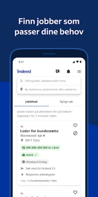 Opplev den ultimate jobbsøkeopplevelsen med Indeed. Med tusenvis av nye muligheter som dukker opp hvert minutt, leverer Indeed en intelligent plattform som raskt kobler deg til drømmejobben. Enten du aktivt leter etter din neste karrierestopp eller bare utforsker markedet, samler Indeed alle relevante stillinger på ett sted, skreddersydd for dine ambisjoner og behov. Din neste profesjonelle mulighet er kun noen få trykk unna, forenklet for å maksimere dine sjanser for suksess.