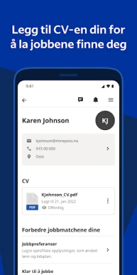 Glem tidkrevende søk; Indeeds avanserte søkefiltre lar deg finjustere resultatene basert på dine preferanser, inkludert stillingstittel, lokasjon, bransje og fleksible arbeidsordninger som hjemmekontor, deltid eller frilans. Utforsk et uovertruffent utvalg av stillinger, inkludert de som publiseres direkte på Indeed og fra tusenvis av andre kilder, og oppdag personlig tilpassede anbefalinger som matcher din profil og erfaring. Søk sømløst direkte fra enheten din: med Indeed kan du enkelt laste opp din eksisterende CV eller bygge en profesjonell CV rett i appen, og deretter gjenbruke den for flere søknader – et tidsbesparende grep som gjør prosessen effektiv.
