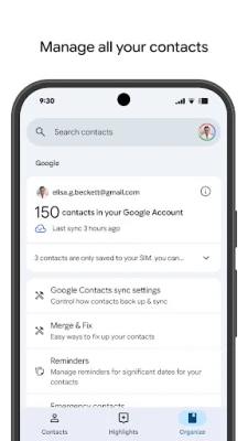 Med Kontakter sikkerhetskopierer og synkroniserer du enkelt alle dine viktige kontakter i Google-kontoen. Få tilgang til dem på tvers av enheter, gjenopprett slettede kontakter, og hold listen organisert. Appen hjelper deg også med å unngå duplikater og minner deg om viktige dager.