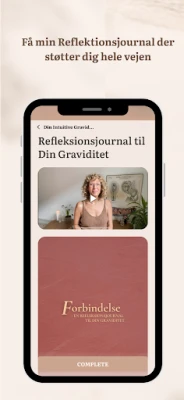 Kjernen i opplevelsen er et omsorgsfullt seks-ukers forløp, "Din Intuitive Graviditetsrejse", som utfolder seg uke for uke med et nytt tematisk fokus. Gjennom inspirerende videoer, praktiske øvelser, beroligende meditasjoner og dype refleksjoner, vil du gradvis oppdage din intuitive kraft. Forløpet støtter deg i å navigere graviditetens landskap, forberede deg mentalt og fysisk til fødselen, samt dyrke en nær relasjon til ditt ufødte barn. Som en verdifull følgesvenn får du også tilgang til refleksjonsjournalen "Forbindelse", et vakkert rom for dine tanker og følelser, som beriker din personlige utvikling gjennom disse transformative månedene.