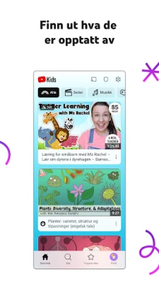 Velkommen til YouTube Kids, et digitalt univers skreddersydd for de yngste i familien! Her kan barn i alle aldre dykke ned i spennende og aldersriktig videoinnhold, samtidig som foreldre kan puste lettet ut. Appen byr på en intuitiv design og smarte navigasjonsverktøy som gjør det enkelt for barn å utforske, lære og la fantasien flyte fritt. Gi barna muligheten til å oppdage nye interesser og bygge selvtillit i et trygt og positivt nettmiljø, nøye kuratert for deres unike utvikling.
